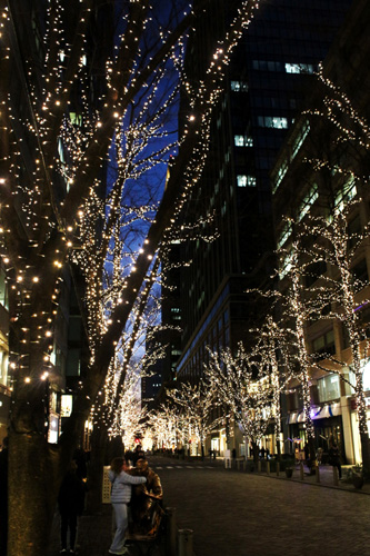 街路樹の樹形に沿って空へと延びるイルミネーションの灯りは控え目で、あくまで主役は街の営みと行き交う人々の