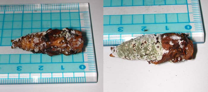 2003.6.1 なんと、蛹で死んでしまった。カビがびっしり生えていた。