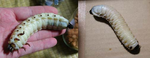 プレイシーの幼虫と同じように、ドックフードを与えながら飼育。