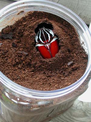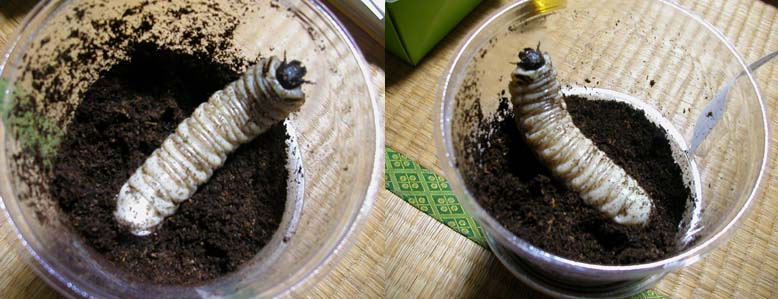 はじめは容器の中をぐるぐる動き回っていたが、1ヶ月ほどすると、外からは見えなくなる。