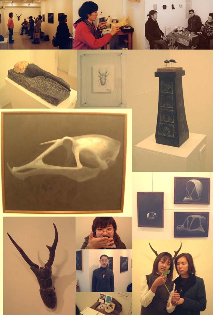骨と甲虫をモチーフにした展覧会で、会場には本物の骨や甲虫標本、生きた甲虫、イグアナなどが連れ込まれ、ちょっと変わった展覧会になりました。