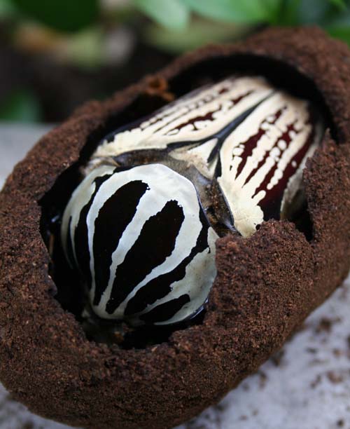 繭の中の青いウガンデンシス。模様や色は様々でおもしろい。