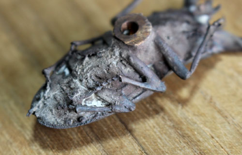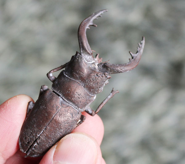 甲虫標本レプリカとは、甲虫を直に型取りしてブロンズに置き換えたもので、時にツメや触角まで再現されるものもあります。