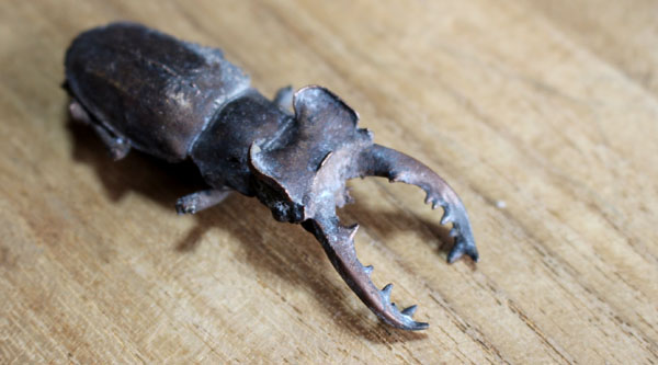 甲虫標本レプリカとは、甲虫を直に型取りしてブロンズに置き換えたもので、時にツメや触角まで再現されるものもあります。