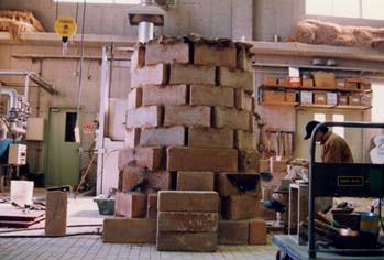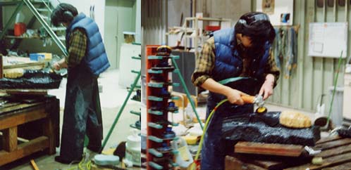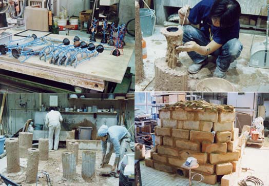 1997.11 ブロンズ鋳造のための型を焼いています。