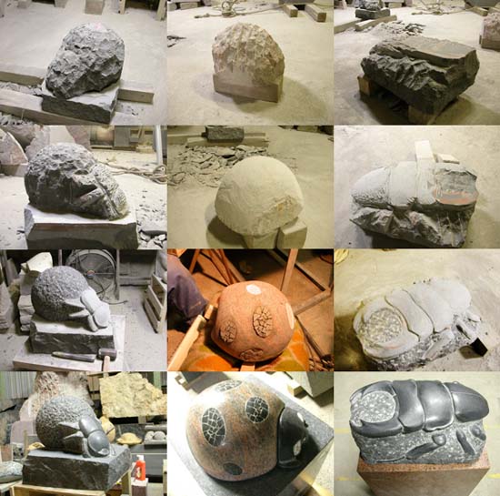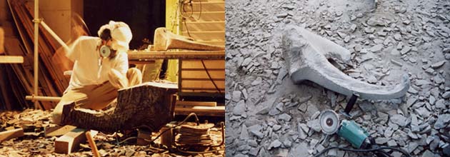 手前にあるのは羽の部分になる黄色いトラバーチンです。