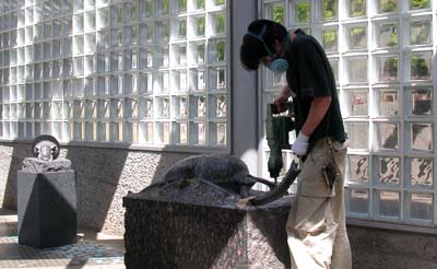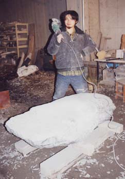 2000.11 ポリッシャーで磨いてゆきます。水が冷たひ・・。