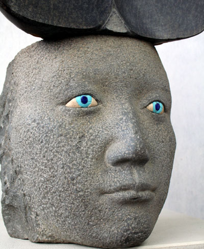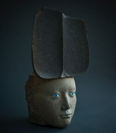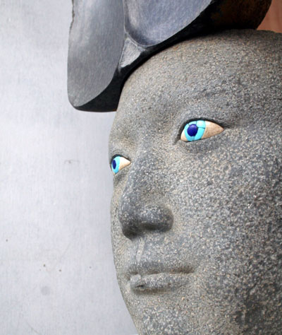 Her eyes are inlaid with turquoise and Lapis Lazuli.