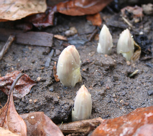 落ち葉の下に隠れていたので薄いピンク色だ。
