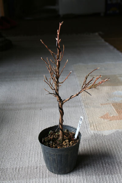 道路にその種を一粒見つけたので、実生してほうき立ちの盆栽として育ててみようと思う。