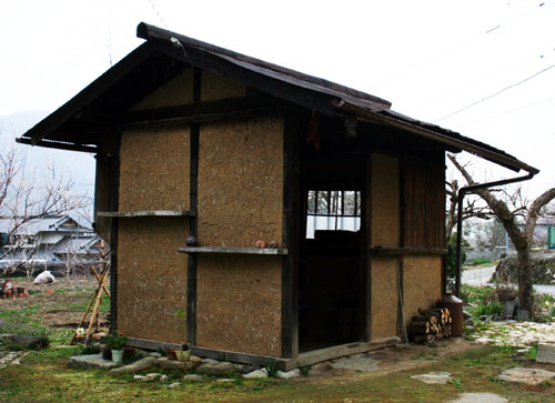 軒下に薪を積み上げると土壁に風情を与えてくれる。