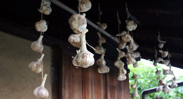 毎年植えるニンニクを収穫した。こうして乾燥させると、とても絵になる。