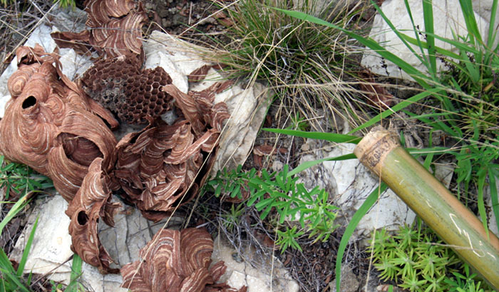 巣は、暗くなるのを待って長い竹でつつき落したが、あんな小さなスズメバチでも、結構な毒を持っているんだなあ。