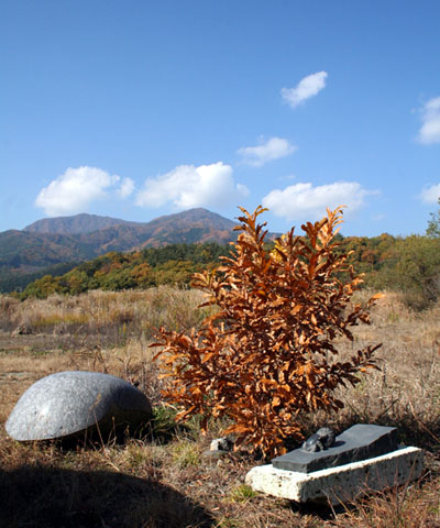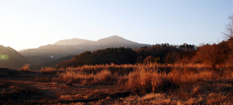 遠くの山が黄色く色づいてきた。クヌギは春の芽出しまで枯れ葉を落とさない。