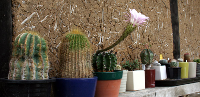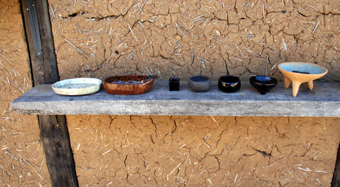 自作の植木鉢を並べて植え替えの準備。