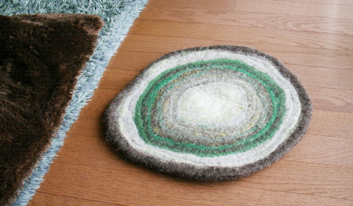 テキスタイルの作家、奥由起子さんの作品。メノウ座布団(?)