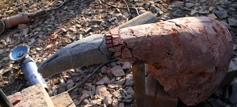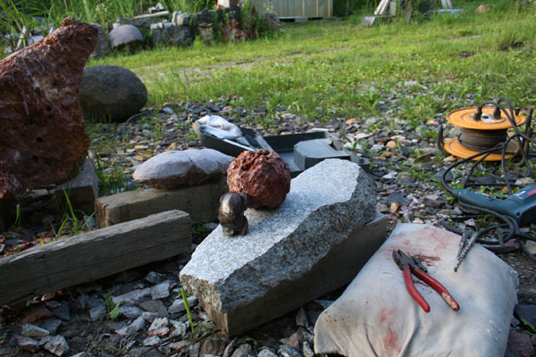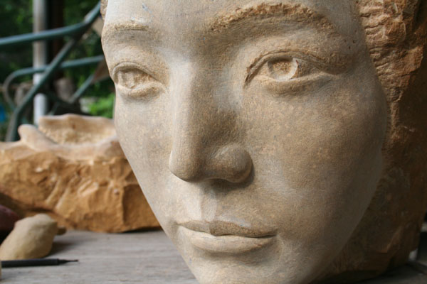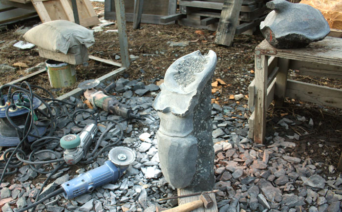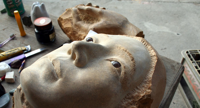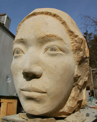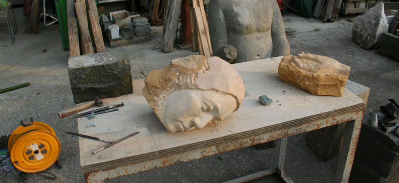 アトリエでは首がまだ仕上がっていない。もう1年半も手がけているが、ゆっくりと進んでいる。