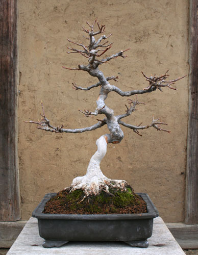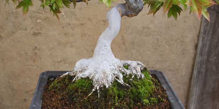トウカエデの盆栽を植え替えた。根の広がりが美しい。