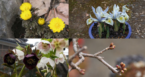 庭の植物が、順番に動き出す。福寿草、ミニアイリス・・・