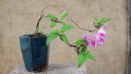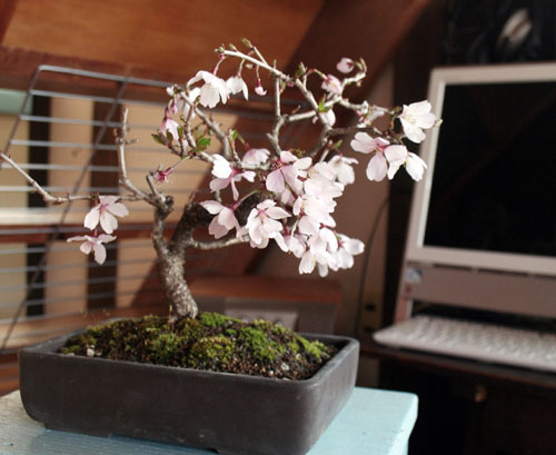 フジザクラの盆栽を部屋に。