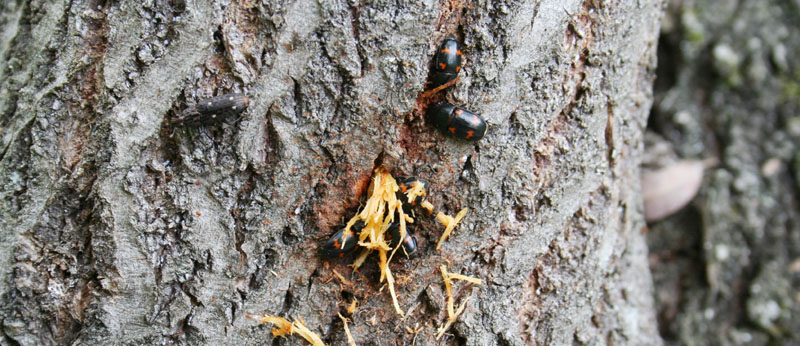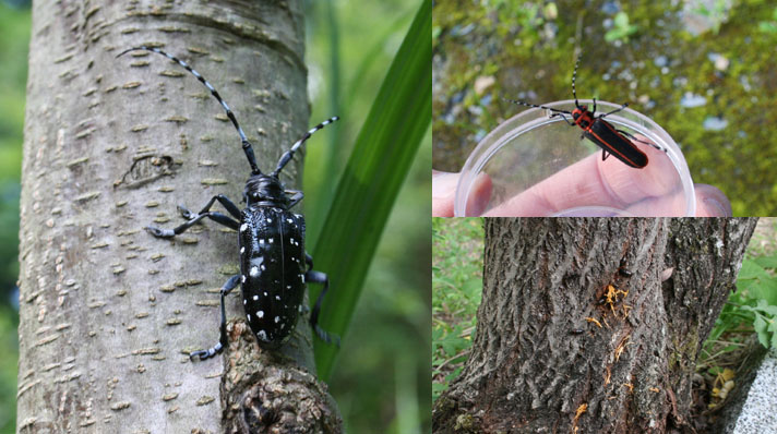 今年もゴマダラカミキリがたくさん飛び交っている。ハンノキカミキリもやってきた。
