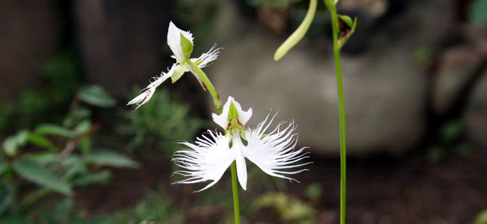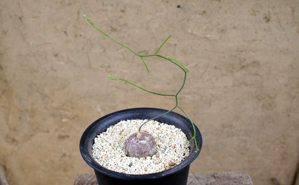 針金のような茎がひょろひょろと伸びた植物。先っぽにはつぼみがついている。