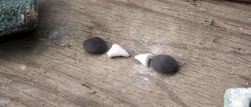 これが黒曜石と大理石の部品。黒曜石は磨くとうっすらと黒い透明になるので、瞳に奥行きが出る。