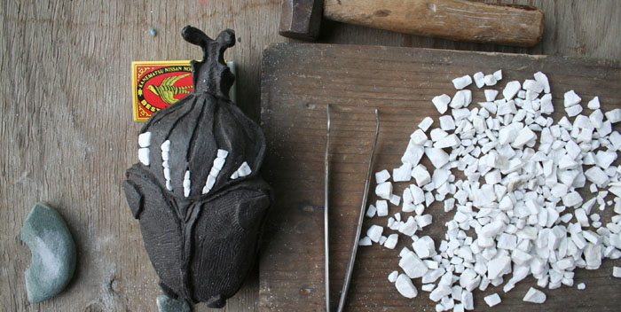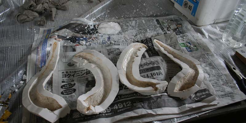 ノコギリクワガタのアゴを石膏取りする。 大学にいた頃は、随分と恵まれた環境で制作していたなあ。