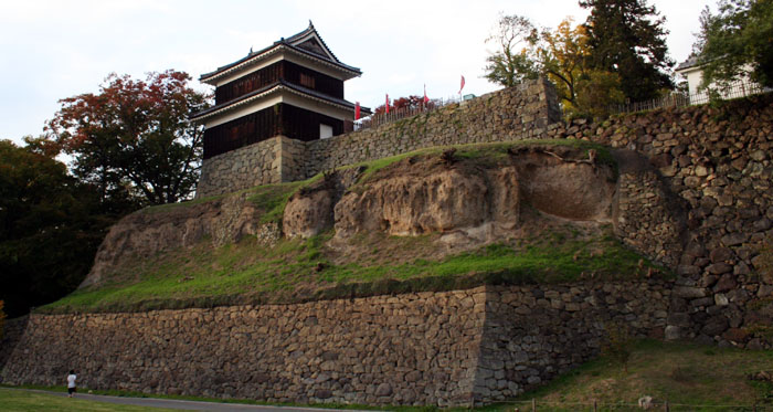 上田城の櫓を見上げる。ここを城攻めするのは遠慮したい。