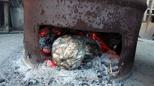 アトリエで焼き芋。家で食べるより、外で食べるほうがおいしい。