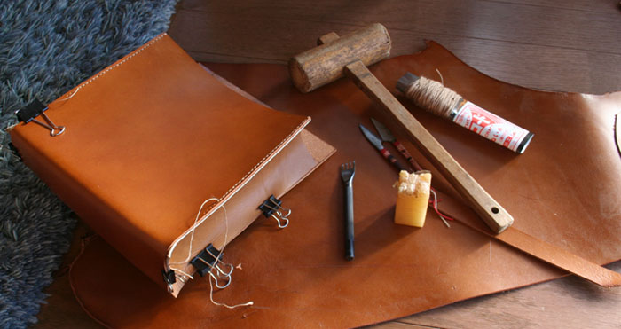 ふだん使いのカバンを作成中。革のカバンは高いが、自分で作れば大きさやデザインも好きなように作れる。