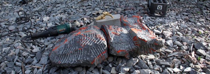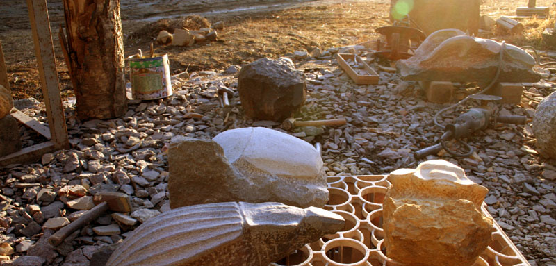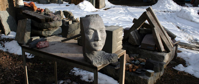本小松石で人物を制作。完成はいつになることやら。