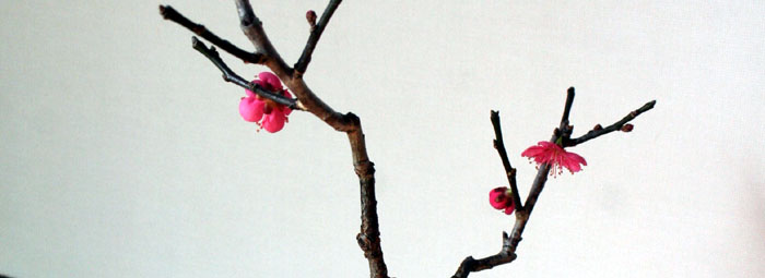 緋梅。梅は花の季節、樹の性質、樹形、どれをとっても秀逸である。