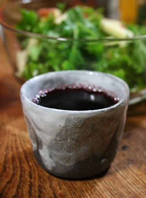 自作のうつわでワイン。
