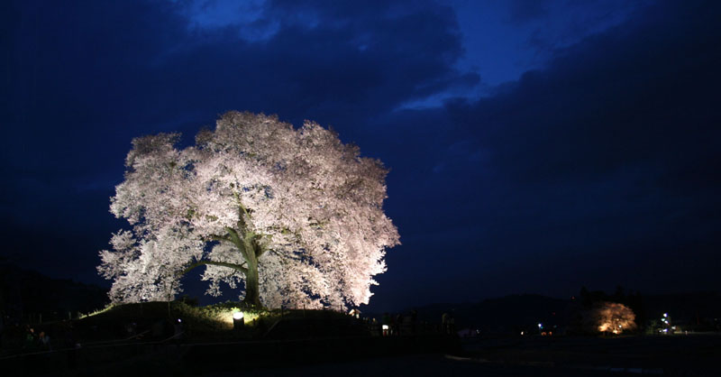 わに塚の桜を見に行った。ライトアップが始まってすぐ、空がまだ青くみえて美しい。