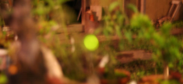 庭のホタルの光。盆栽で休んでいる者もいる。