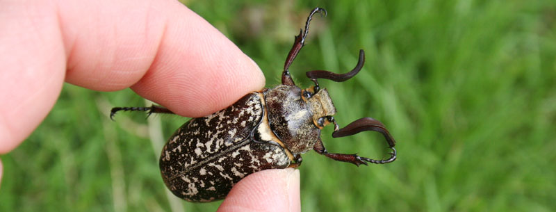 友人に誘われて採集したヒゲコガネ。ひじょうにせわしなく、シュッシュッと音を出している。