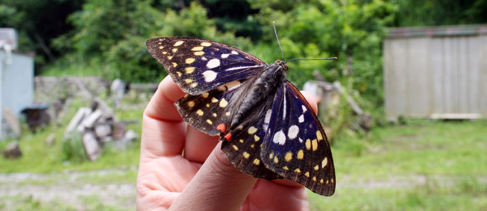 アトリエでつかまえたオオムラサキ。クヌギの樹液に来ていた。
