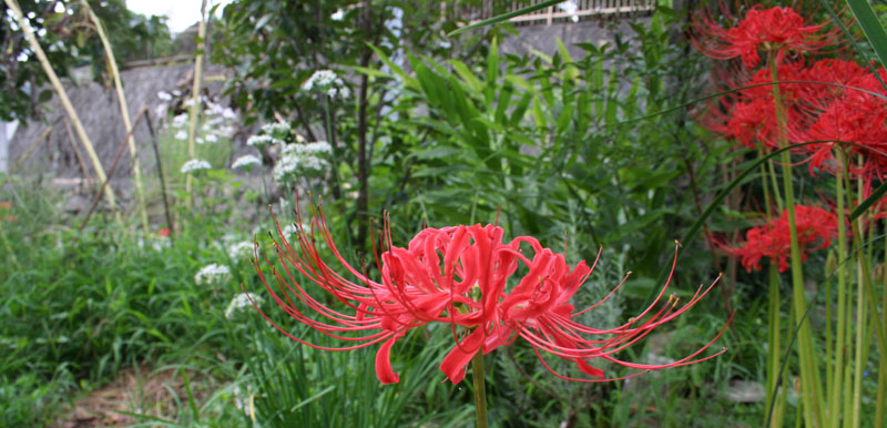 庭のヒガンバナが秋を告げる。毎年勝手に殖えていってくれているが、おかげでモグラが来なくなった気がする。