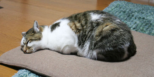 このストーブがついていると、いつのまにかやって来て横に張りついている。